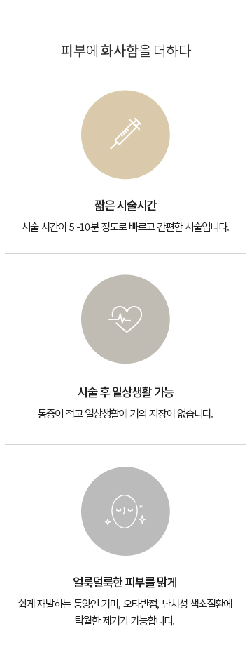 기미와 같은 색소질환은 물론 미백 효과, 필링, 화이트닝 효과를 한 번에 볼 수 있습니다.
